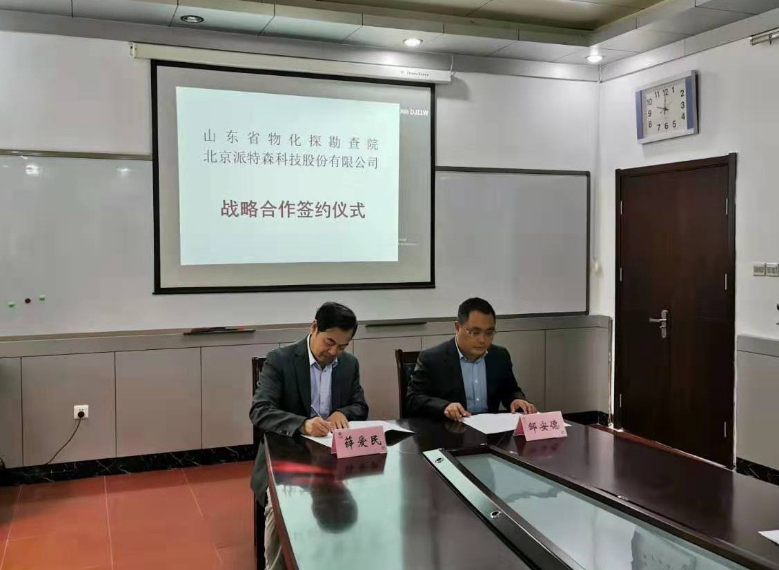 11月1日,北京派特森科技股份有限公司董事长薛爱民与山东省物化探勘查院院长邹安德签署战略合作协议书。